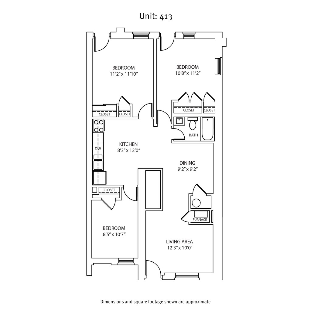 3 Bedroom / 1 Bath - Floorplan 1 Apartment Unit: 413Apartment Model: 3 Bedroom / 1 Bath$2,1353 Bedroom, 1 Bath, 1039 sq ftAvailable Now