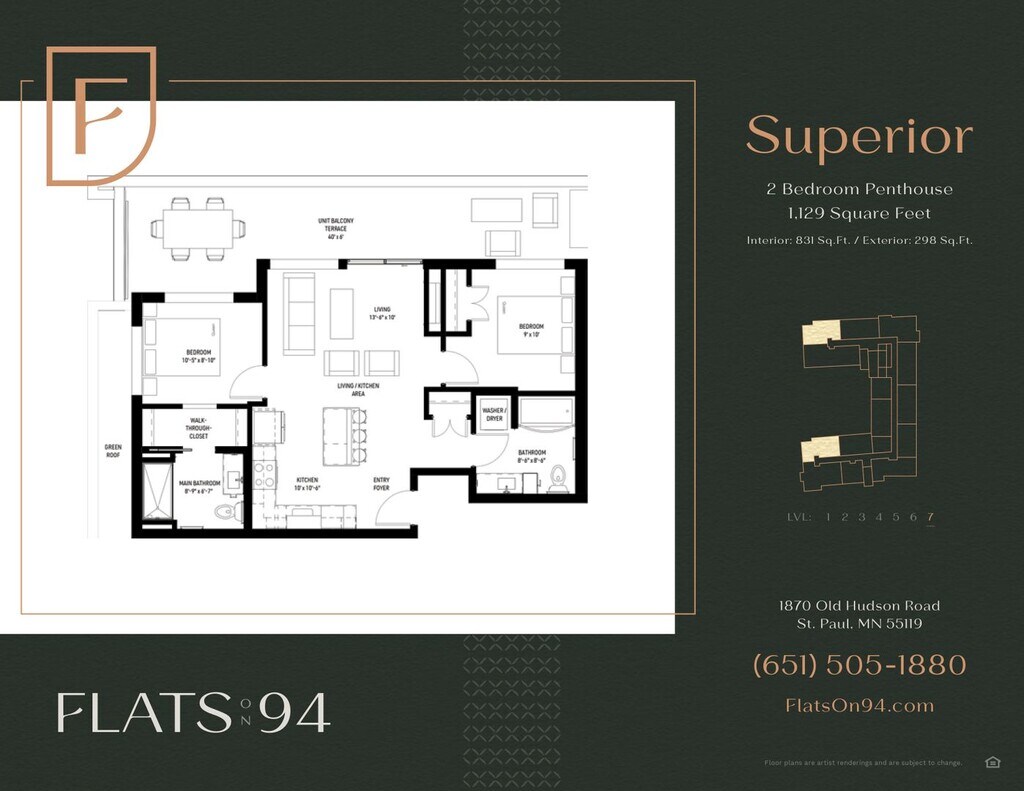 Flats on 94 provides an amenity-rich work/play lifestyle close to the best that St. Paul has to offer. Ideally located near Woodbury shopping, Battle Creek Park and I-94 for easy access to both downtowns, you’re just minutes from exceptional dining, retail shops, scenic trails and major employers. But your favorite Twin Cities spot may be right at home. From our modern spaces and designer décor to our many thoughtful amenities, every detail at Flats on 94 has been crafted to deliver a sense of quiet, cozy luxury. We offer a wide range of unique floor plans to fit your life—and three distinct finish packages to fit your style. Sleek and spa-like, moody and modern, swank and sophisticated—you choose the vibe. You’ll even find a private balcony on select units. Flats on 94 also offers access to a wealth of community conveniences. Sweat it out in our fitness and yoga studio. Play some pool in our Social Room. Grill out on our private, second-floor deck. Find a quiet spot to work in our Wi-Fi-ready Gather Room. Plus, enjoy underground parking, secure package delivery, concierge service and more. Welcome to modern apartment living with a whole new style: yours. Welcome to Flats on 94.
