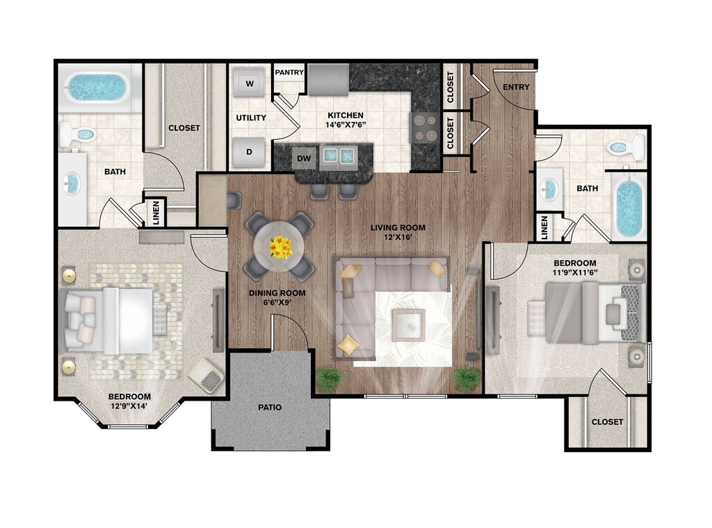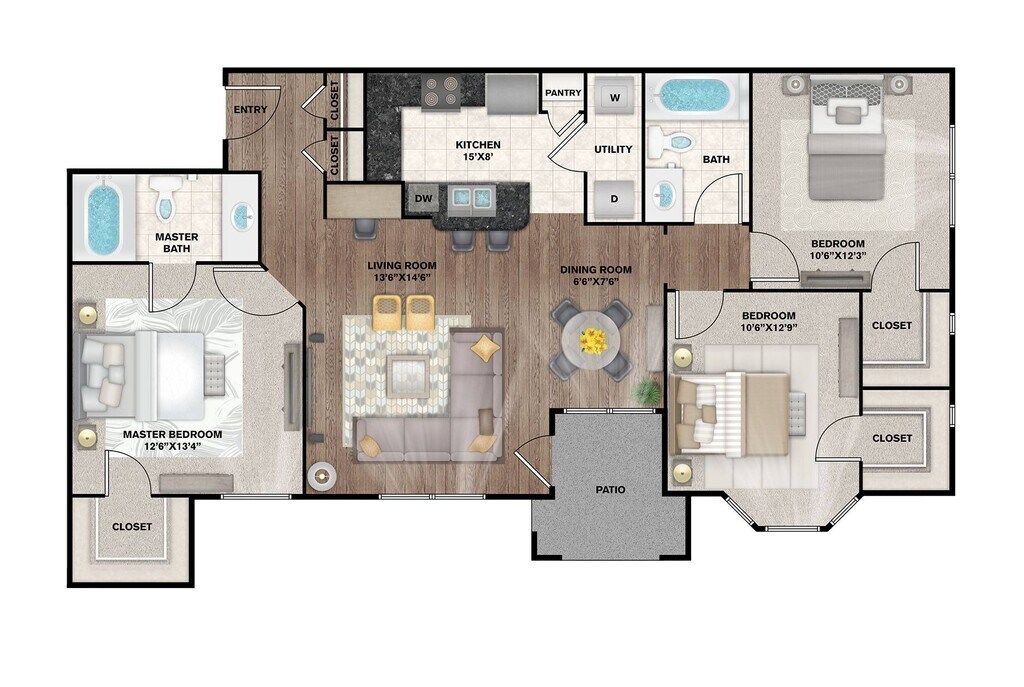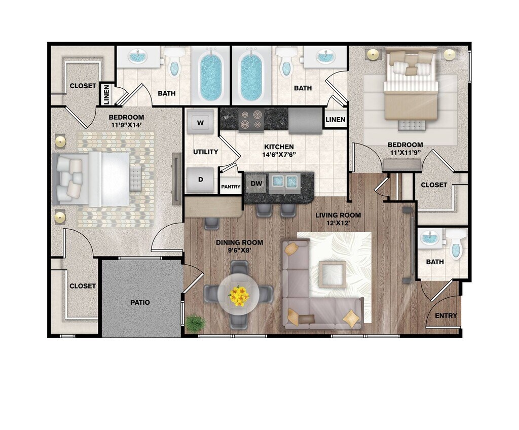 2 Beds, 2 Baths, 1084 sq ftAvailable NowModel Gallery