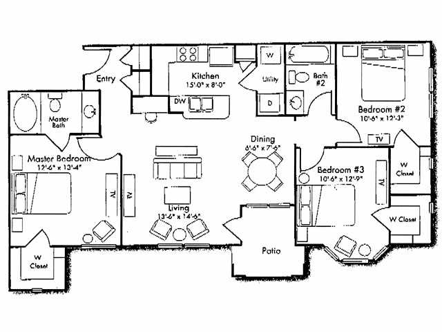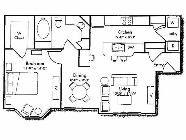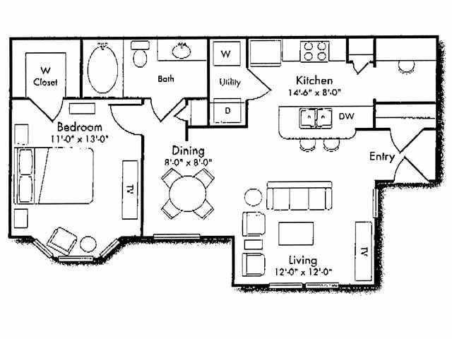 A1 - Floorplan 3 Apartment Unit: 913Apartment Model: A1$1,2801 Bedroom, 1 Bath, 719 sq ftAvailable Now2 Bedrooms
