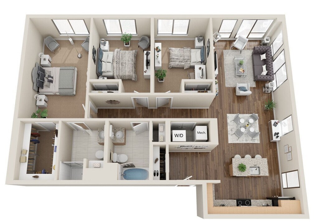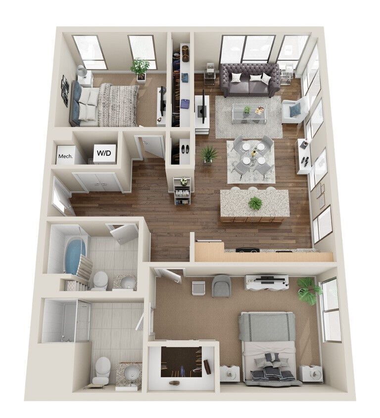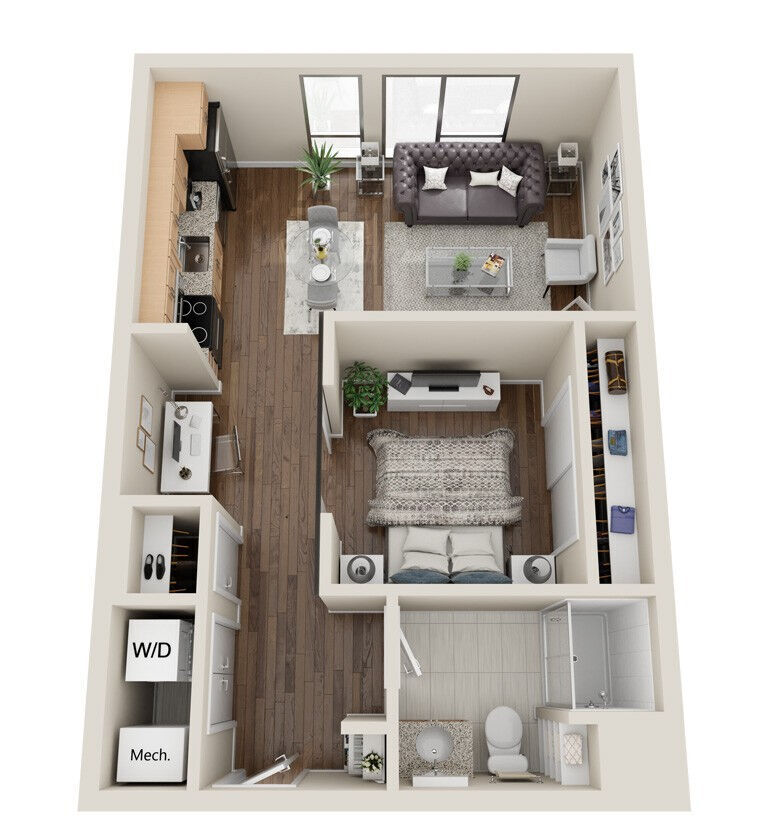 Apartment Model: AA4From $3,3821 Bedroom, 1 Bath, 775 sq ftAvailable NowFloor plans are artist's rendering. All dimensions are approximate. Actual product and specifications may vary in dimension or detail. Not all features are available in every rental home. Prices and availability are subject to change. Base rent is based on monthly frequency. Additional fees may apply, such as but not limited to package delivery, trash, water, amenities, etc. Deposits vary. Please see a representative for details.