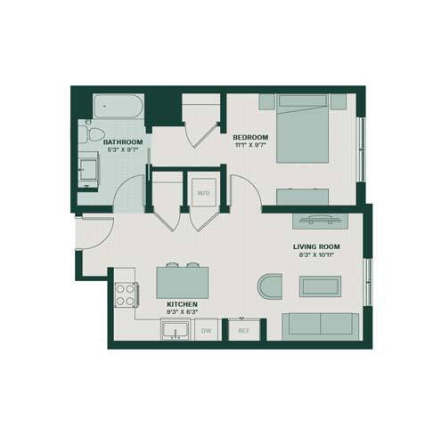 Studio, 1 Bath, 627 sq ftLargest StudioThis is the largest Studio at this PropertyModel Gallery
