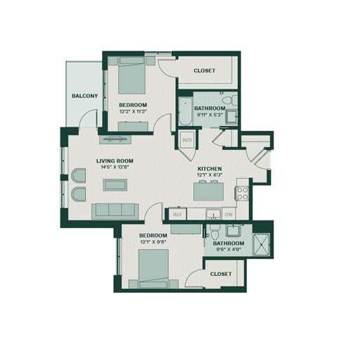 Apartment Model: A9From $4,6031 Bedroom, 1 Bath, 914 sq ftAvailable November 10, 2025![]()