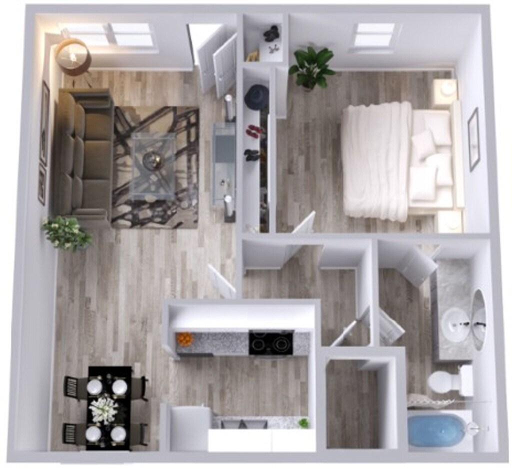 Apartment Model: 1 bed 1 bath1 Bedroom, 1 Bath, 673 sq ftAvailable NowFloorplansPhotos![]()