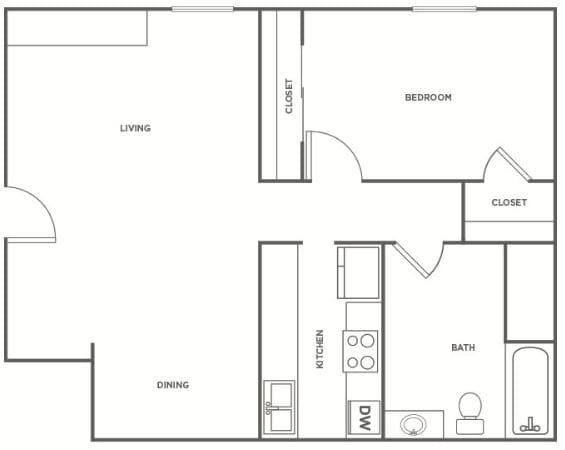 1 Bedroom 1 Bathroom - Floorplan 6 Apartment Unit: 77Apartment Model: 1 Bedroom 1 Bathroom1 Bedroom, 1 Bath, 680 sq ftAvailable Now2 Bedrooms