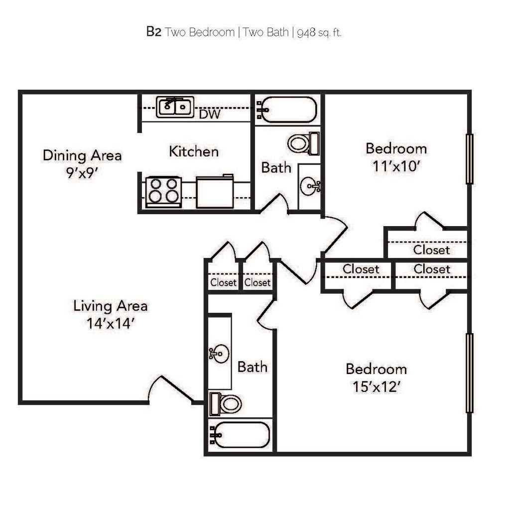 Apartment Model: B12 Bedroom, 1 Bath, 936 sq ftAvailable Now![]()