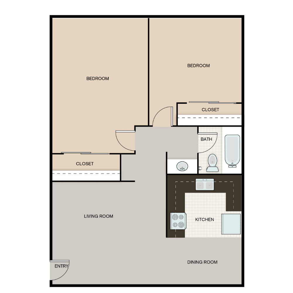One Bed One Bath - Floorplan 5 2 Bedrooms