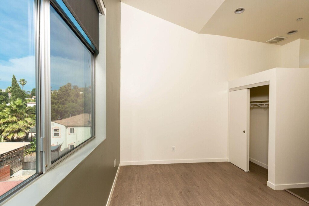 This amazing apartment unit features a HUGE private balcony, with enough room to entertain friends and family or channel your green thumb! The unit has an open floor plan with high ceilings in a live-work loft-style, stainless steel appliances, quartz counters, central air conditioning/heat & ceiling fan, and as well an in-unit washer & dryer. Polished concrete throughout the kitchen and living space and tile in the bathroom. Enjoy the common patio area and BBQ. The location is amazing Sunset Junction; close to lots of popular Silver Lake eating, shopping and entertainment.