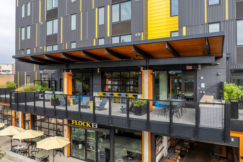 Flock13 is the epitome of the college experience with thoughtfully designed placemaking, student-focused restaurants & retail, and the resources and convenience from The Duck Store. Flock13 is a high-quality off-campus housing community that encourages collaboration and community in the most convenient district one step from campus. Each thoughtfully designed floor plan, with studios, one-, two-, or three-bedroom options reflects a fresh, modern, and contemporary aesthetic. With a variety of outfitted study spaces and communal living rooms, the student experience strikes a balance between quiet contemplation and uplifting partnerships. With all this rising up, plus the many resources of The Duck Store at your doorstep, it's time to up your game and choose Flock13.
