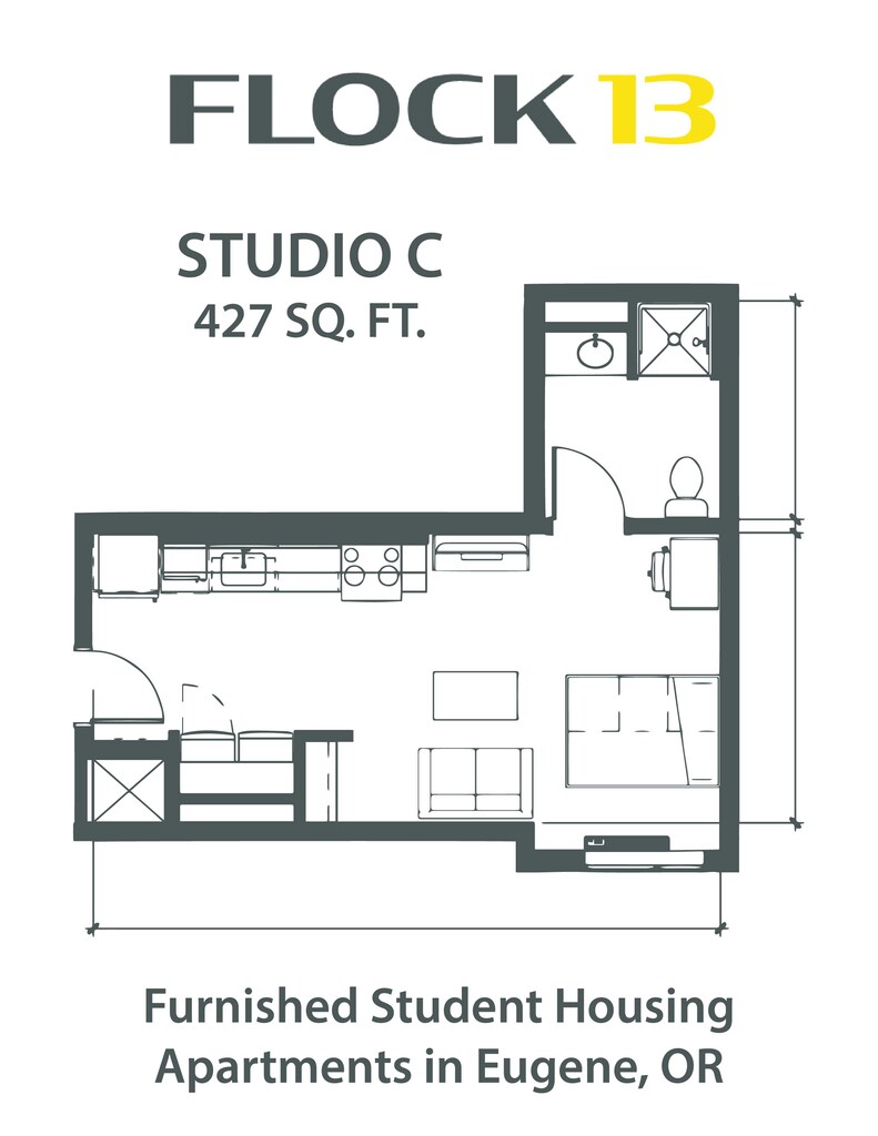 Studio, 1 Bath, 427 sq ftLargest StudioThis is the largest Studio at this PropertyModel Gallery