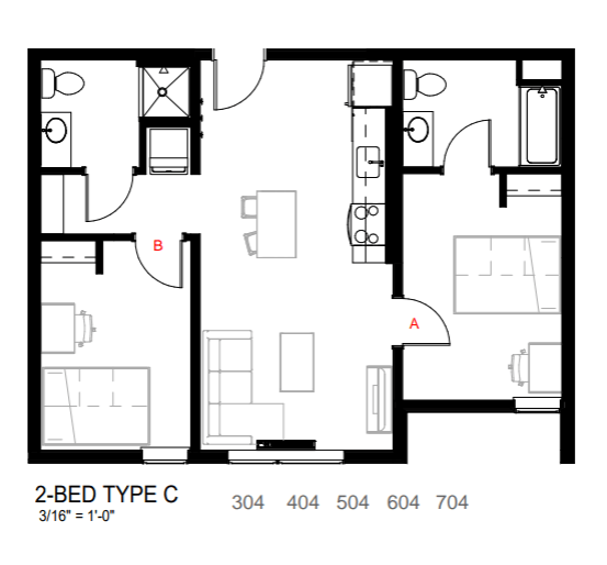 2 Bedroom A - Floorplan 2 2 Bedroom B