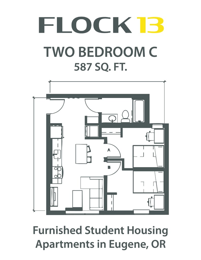 Apartment Model: 2 Bedroom CFrom $1,2702 Bedroom, 1 Bath, 587 sq ftAvailable September 18, 2026![]()