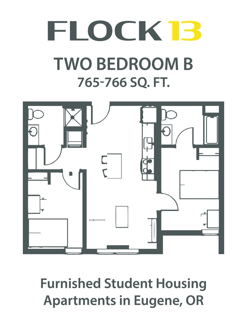 2 Beds, 2 Baths, 765 sq ftLargest 2 BedroomThis is the largest 2 Bedroom at this PropertyModel Gallery
