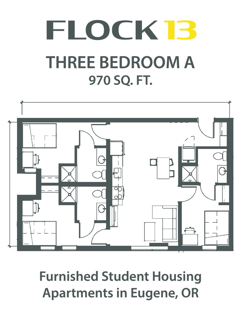 Flock13 offers Studio to 3 Bedroom apartments starting from $1,280 and having 352–970 sq ft. Here is the current pricing and availability: