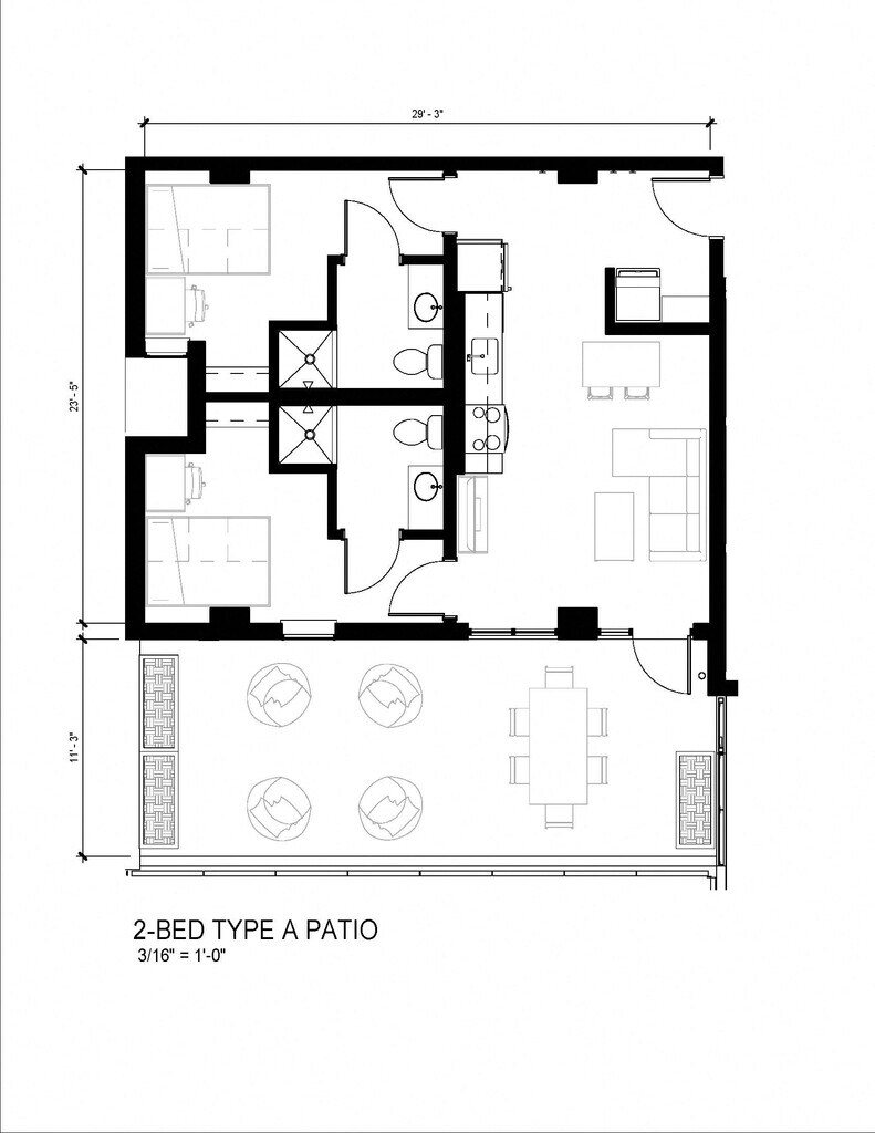 2 Bedroom w/ Patio - Floorplan 1 ![]()