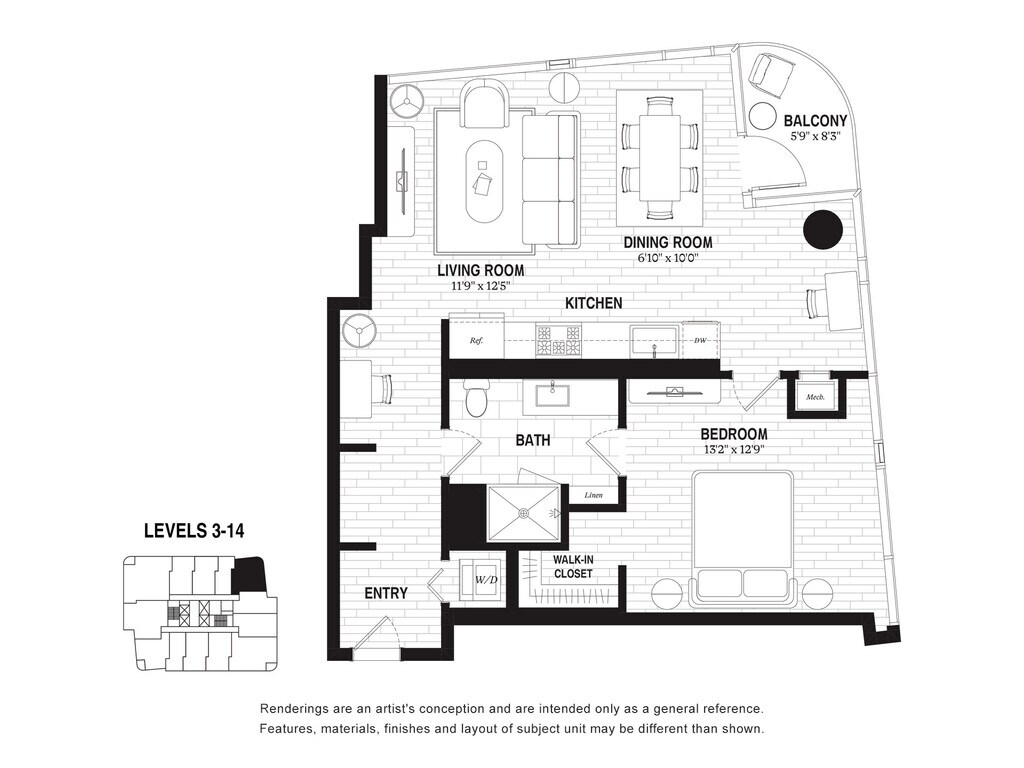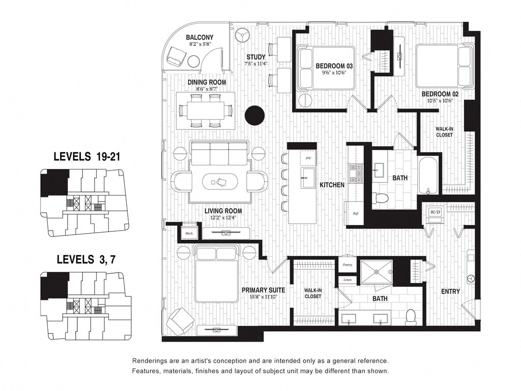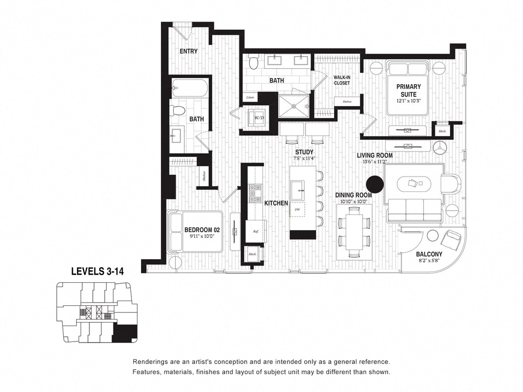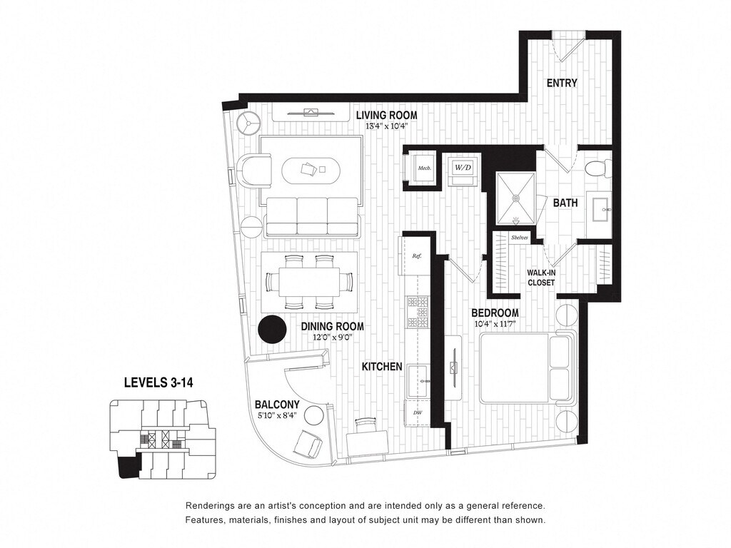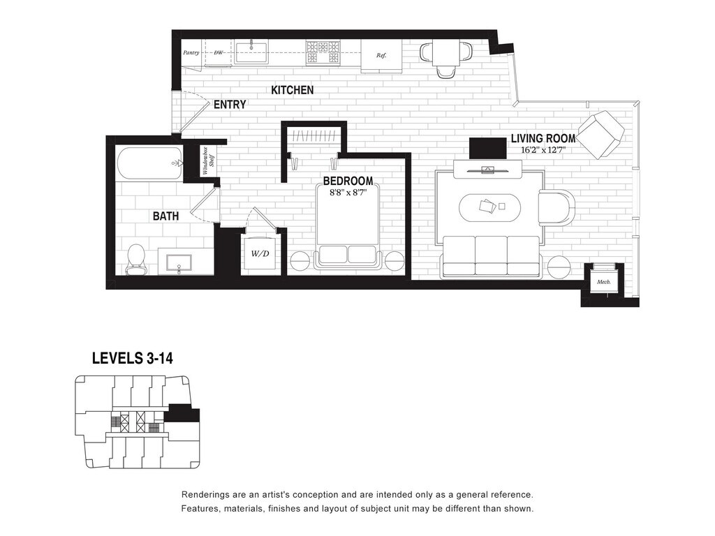 Apartment Model: Studio - FFrom $2,690Studio, 1 Bath, 632 sq ftAvailable January 16, 2026Floor plans are artist's rendering. All dimensions are approximate. Actual product and specifications may vary in dimension or detail. Not all features are available in every rental home. Prices and availability are subject to change. Base rent is based on monthly frequency. Additional fees may apply, such as but not limited to package delivery, trash, water, amenities, etc. Deposits vary. Please see a representative for details.
