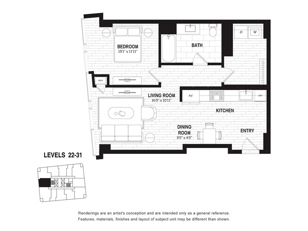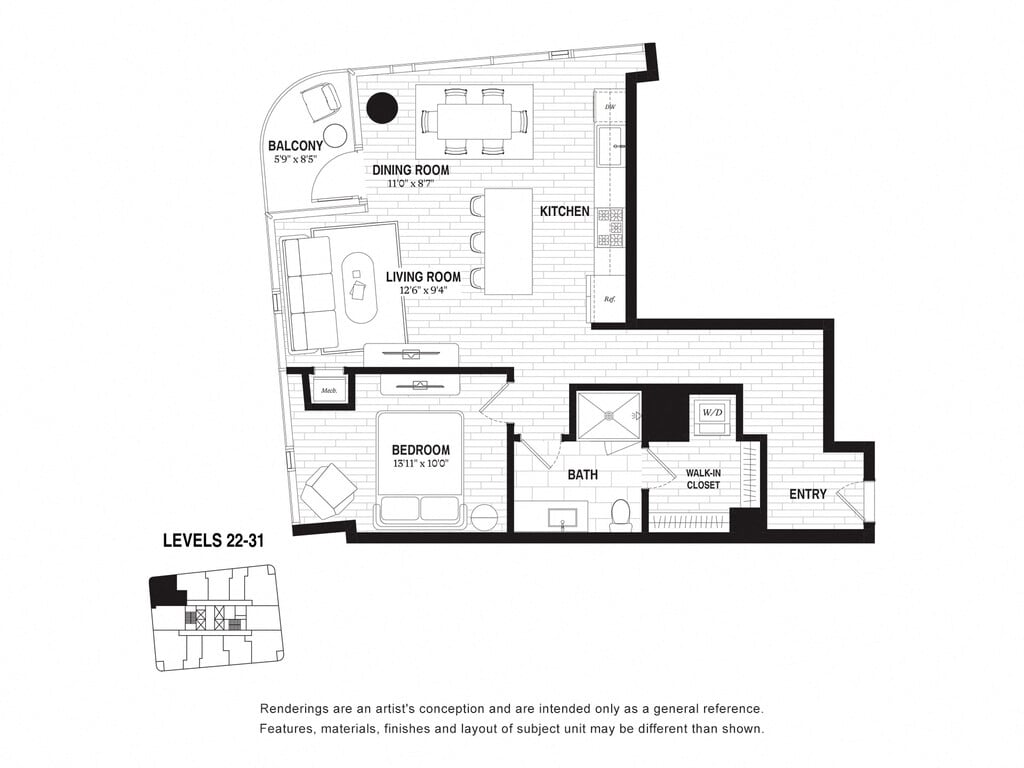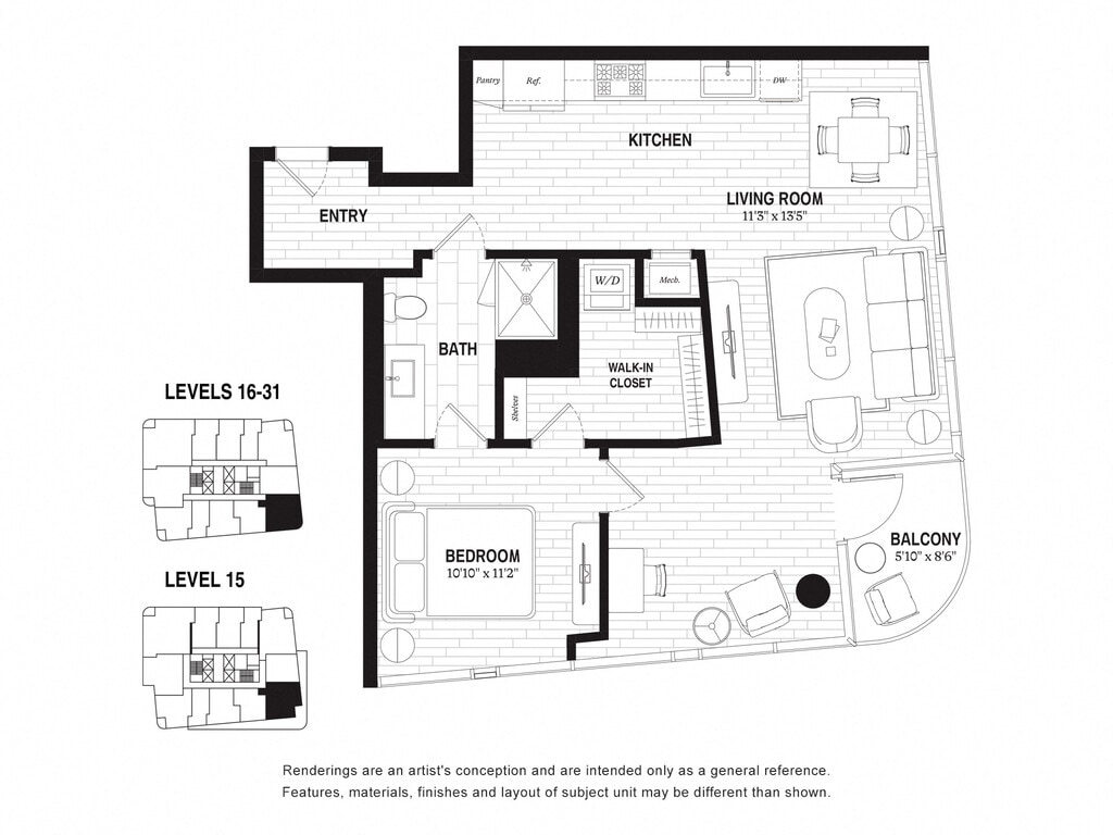 Studio, 1 Bath, 632 sq ftAvailable January 16, 2026Model Gallery