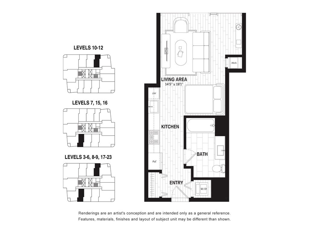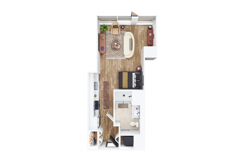 Apartment Model: Studio - EFrom $2,317Studio, 1 Bath, 487 sq ftAvailable NowFloor plans are artist's rendering. All dimensions are approximate. Actual product and specifications may vary in dimension or detail. Not all features are available in every rental home. Prices and availability are subject to change. Base rent is based on monthly frequency. Additional fees may apply, such as but not limited to package delivery, trash, water, amenities, etc. Deposits vary. Please see a representative for details.