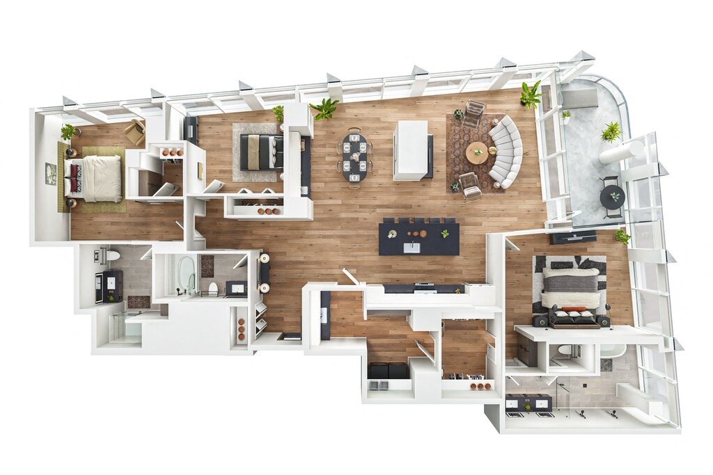 Studio to 3 Bedroom Apartments at Flora currently range from $2,287 to $13,000