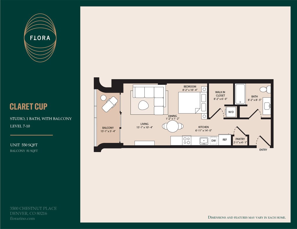 Mallow - Floorplan Apartment Unit: 511Apartment Model: MallowStudio, 1 Bath, 610 sq ftAvailable NowClaret Cup