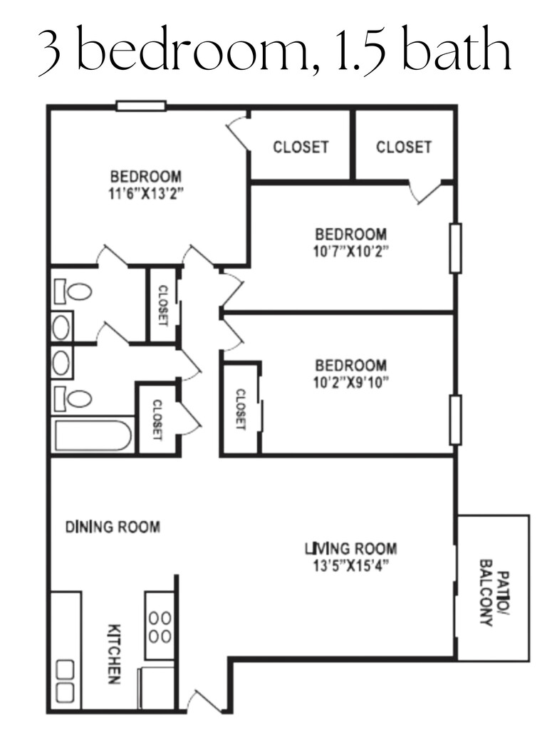 Apartment Unit: 235Apartment Model: 3 bedroom 1.5 bath$1,4253 Bedroom, 1.5 Bath, 980 sq ftAvailable NowApartment Unit: 301Apartment Model: 3 bedroom 1.5 bath$1,4253 Bedroom, 1.5 Bath, 980 sq ftAvailable Now