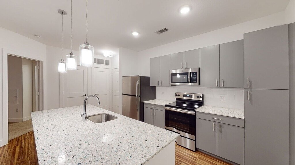 Enjoy the lakeside lifestyle at Florence at The Harbor Apartments in Rockwall Harbor, TX! Choose from studios, 1, and 2-bedroom pet-friendly apartments with modern kitchens, large windows, walk-out balconies, garden-style soaking tubs, in-unit laundry, and high-end finishes. Youll love amenities like a rooftop deck with lake views, firepits with lounge seating, and an outdoor kitchen. Relax in the pool with flat-screen TVs. Stay active in the fitness center with interactive video mirrors. Our pet-friendly community also offers secure package lockers and a private parking garage.Enjoy the vibrant Harbor District with concerts, festivals, farmers' markets, nature preserves, sailing on Lake Ray Hubbard, and shopping at the Plaza at Rockwall. With easy access to I-30 and Highway 250, you're close to downtown Dallas and major employers. The community is zoned in the highly-rated Rockwall Independent School District.You belong at Florence at the Harbor Apartments in Rockwall, TX!