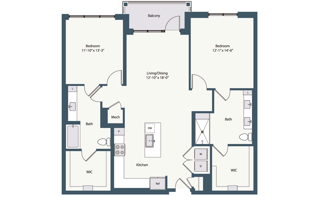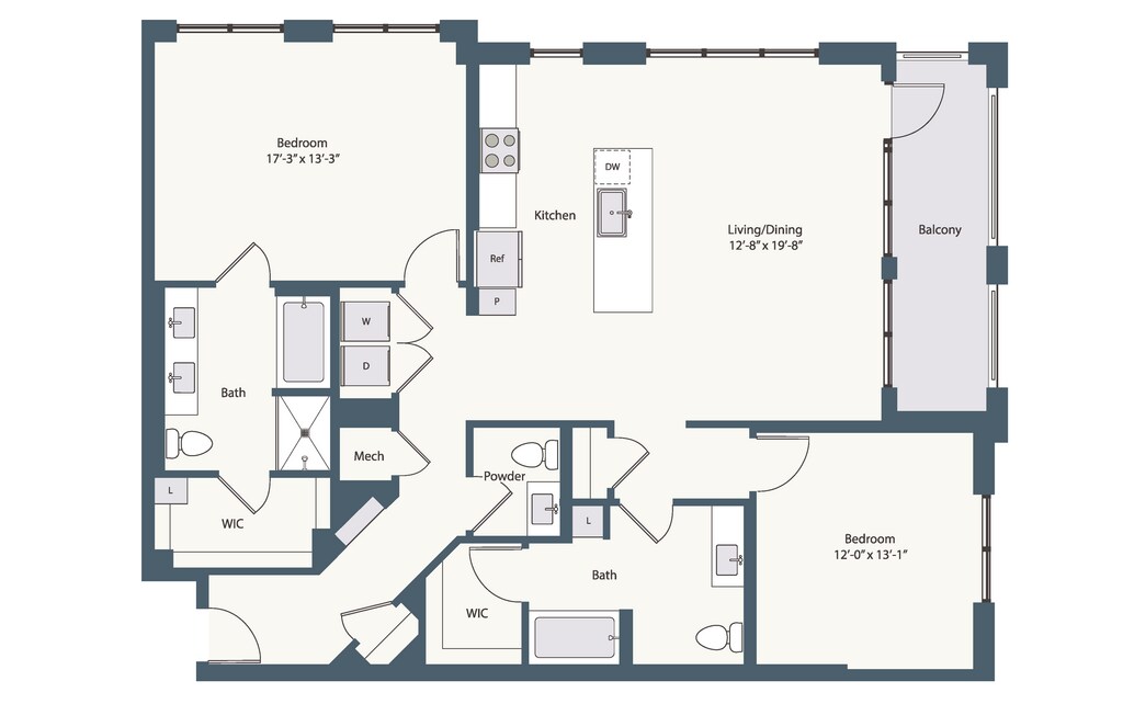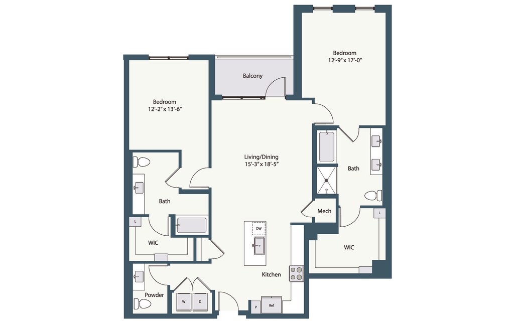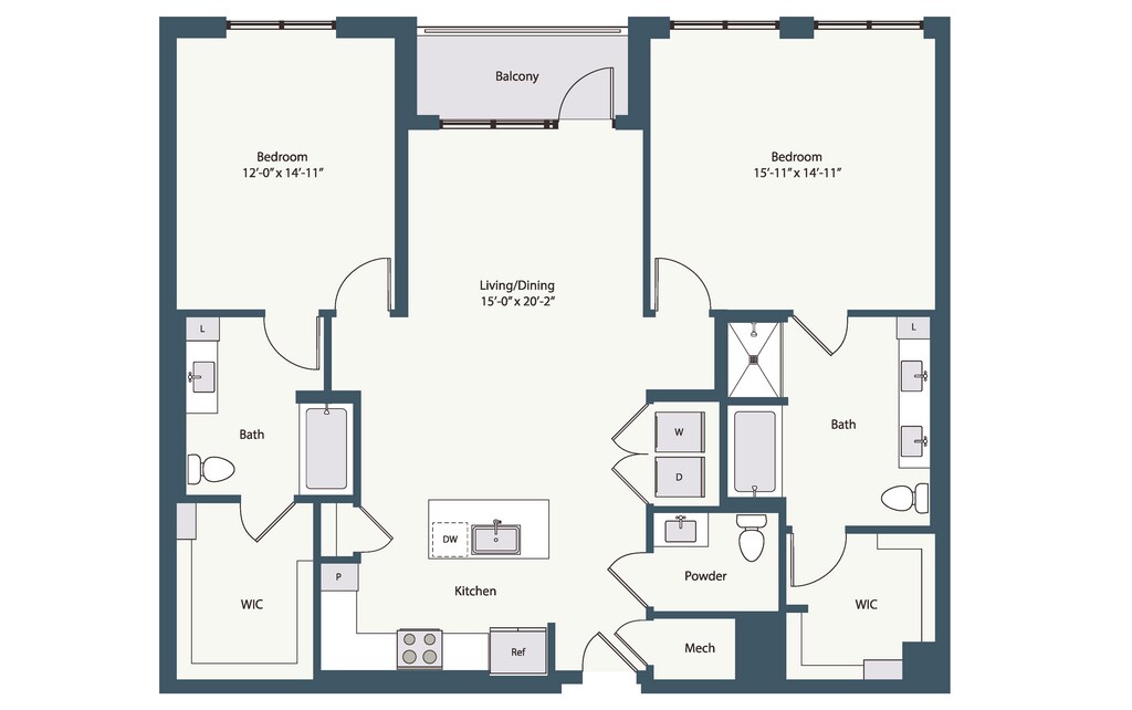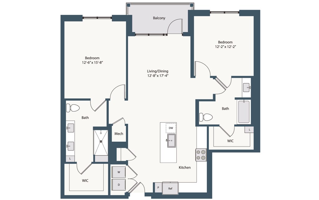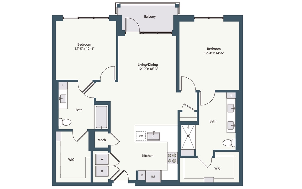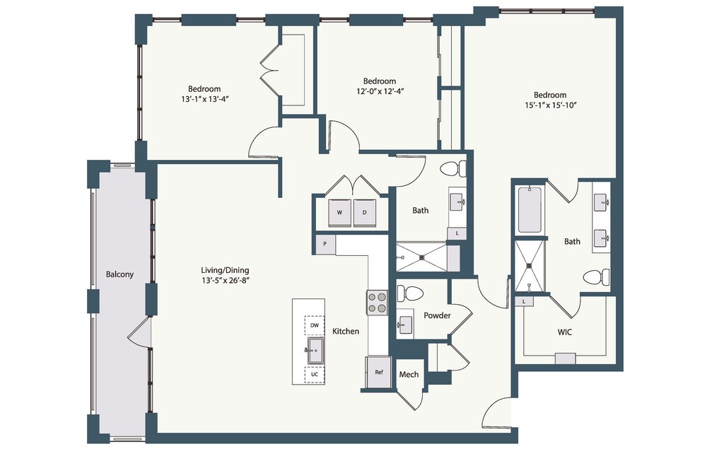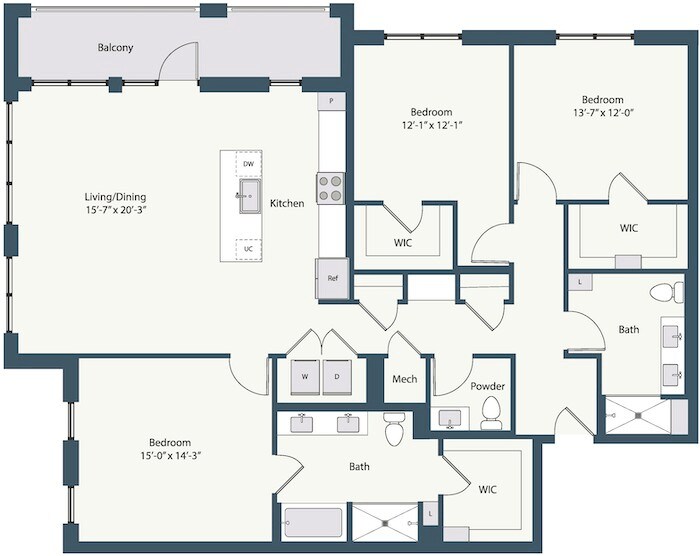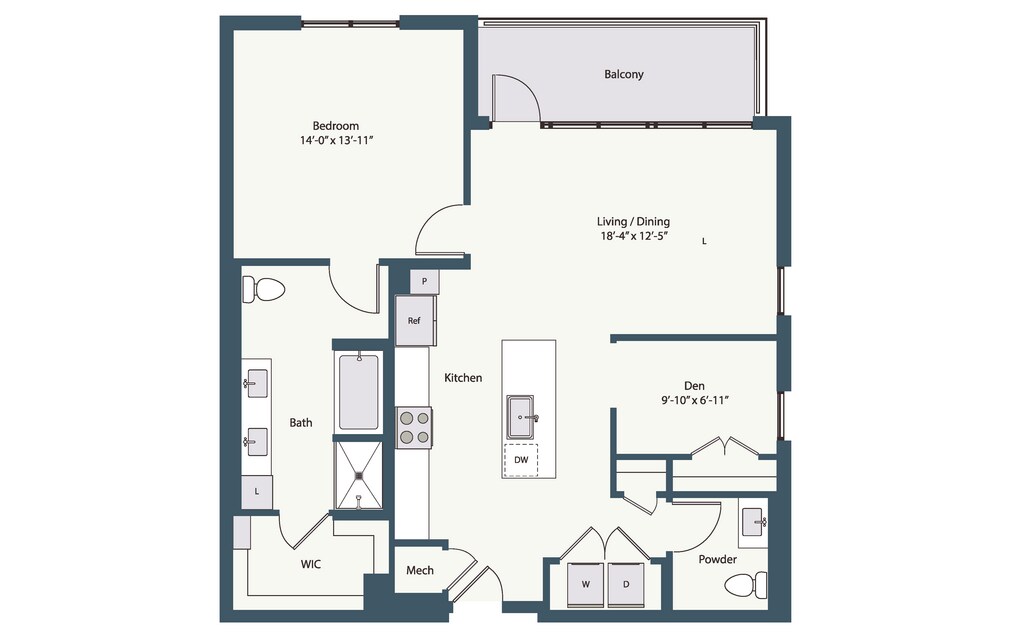 1 Bed, 1.5 Baths, 1087 sq ftAvailable NowLargest 1 BedroomThis is the largest 1 Bedroom at this PropertyModel Gallery