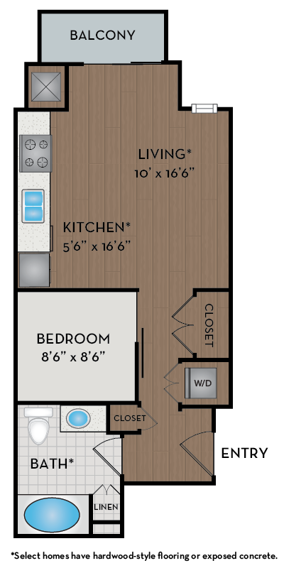Studio, 1 Bath, 510 sq ftTotal Monthly PriceAvailable NowModel Gallery