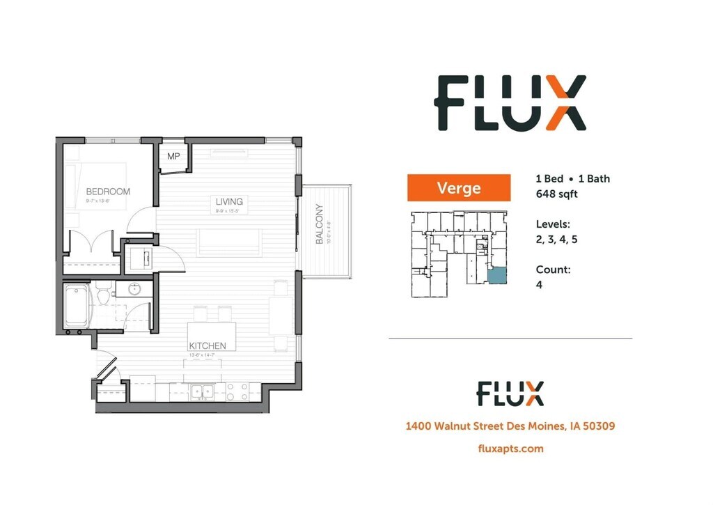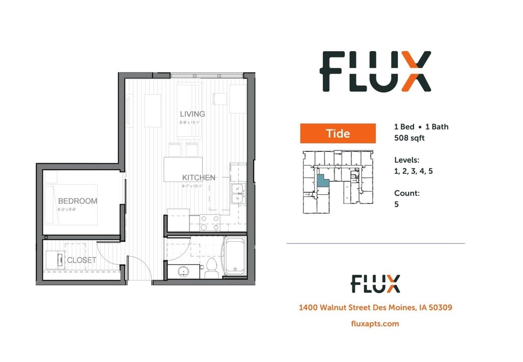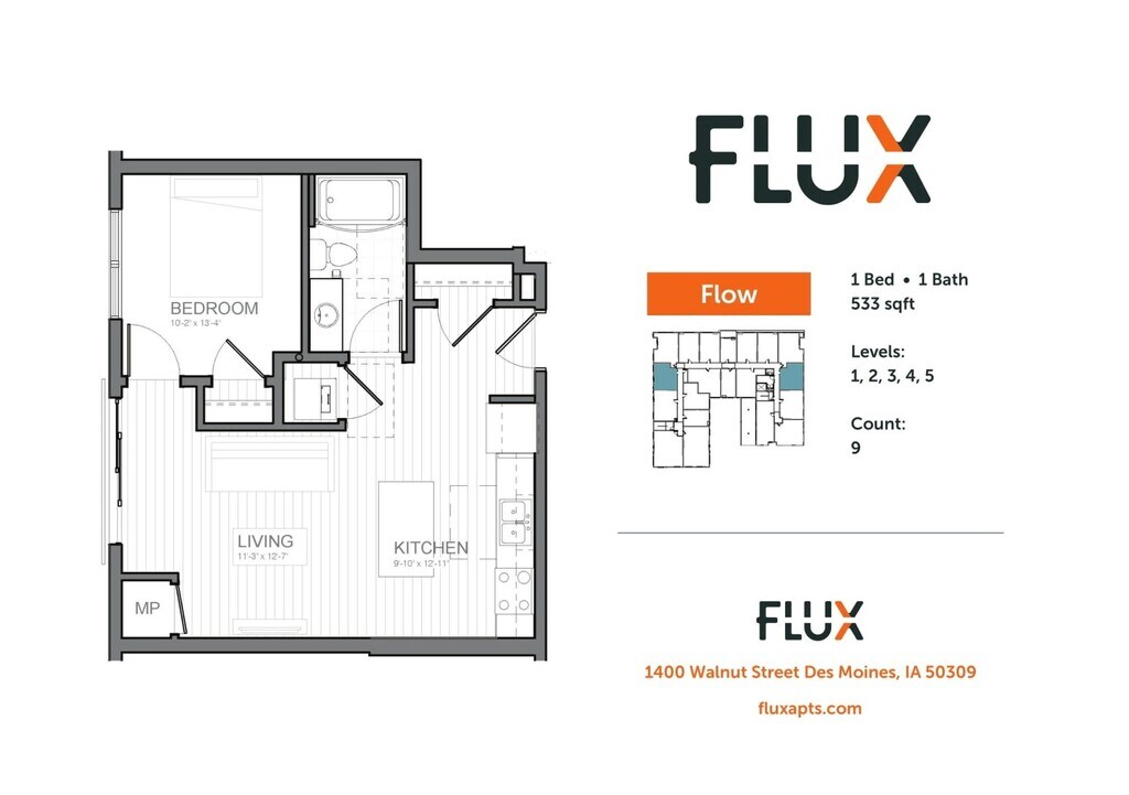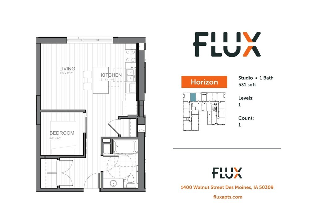 Flux is located in the Downtown Des Moines Neighborhood and 50309 Zip code of Des Moines, IA. This community is professionally managed by Newbury Living