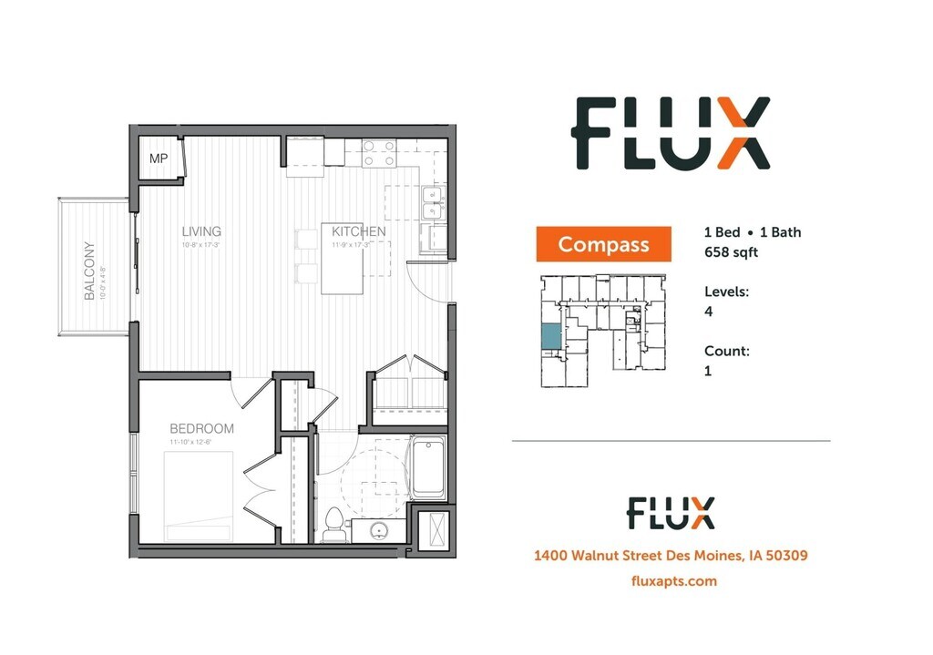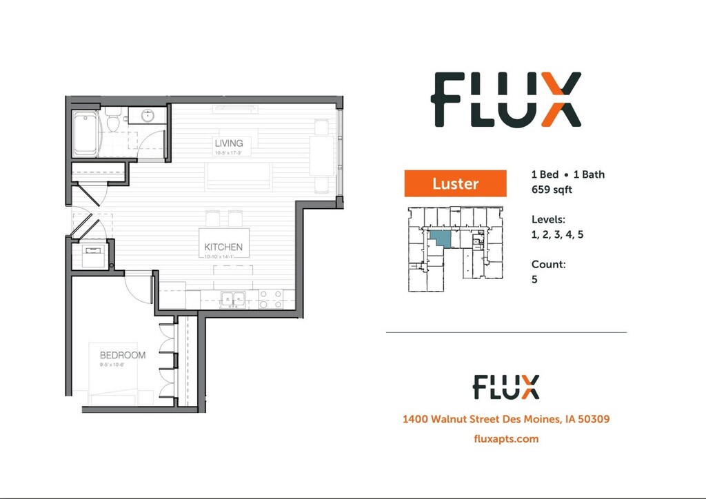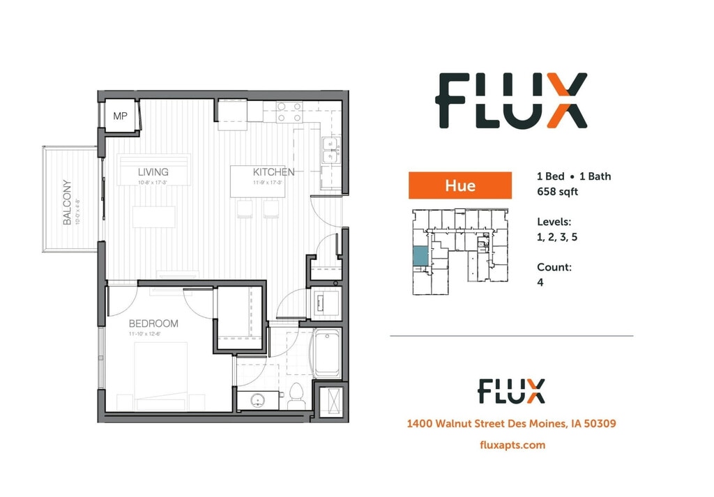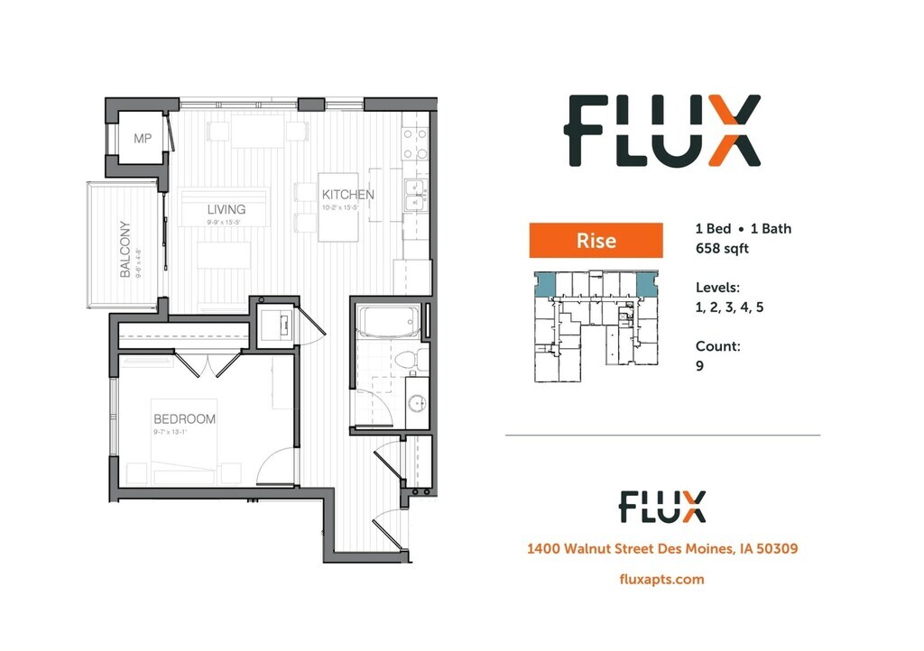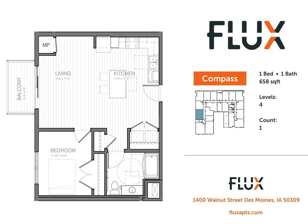 Flux is located in the Downtown Des Moines Neighborhood and 50309 Zip code of Des Moines, IA. This community is professionally managed by Newbury Living