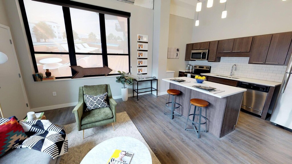 At last, living affordably downtown doesn't have to compromise your lifestyle expectations. Featuring a variety of space-maximizing floor plans to fit your lifestyle needs, Flux delivers the perfect balance of mod luxe comfort and metro convenience: Open layouts with impressive 9’ ceilings. Outdoor courtyards for hot tubbing and grill-outs. A rooftop lounge with stunning skyline views. Everything at Flux has been impeccably designed to provide the comfort you need to crash, create, and crush life.