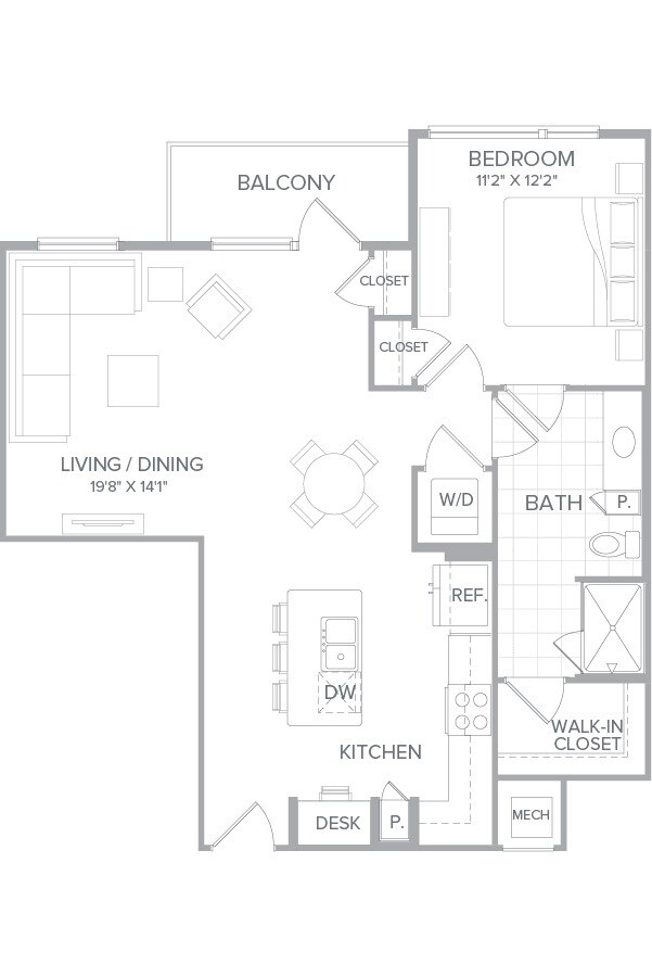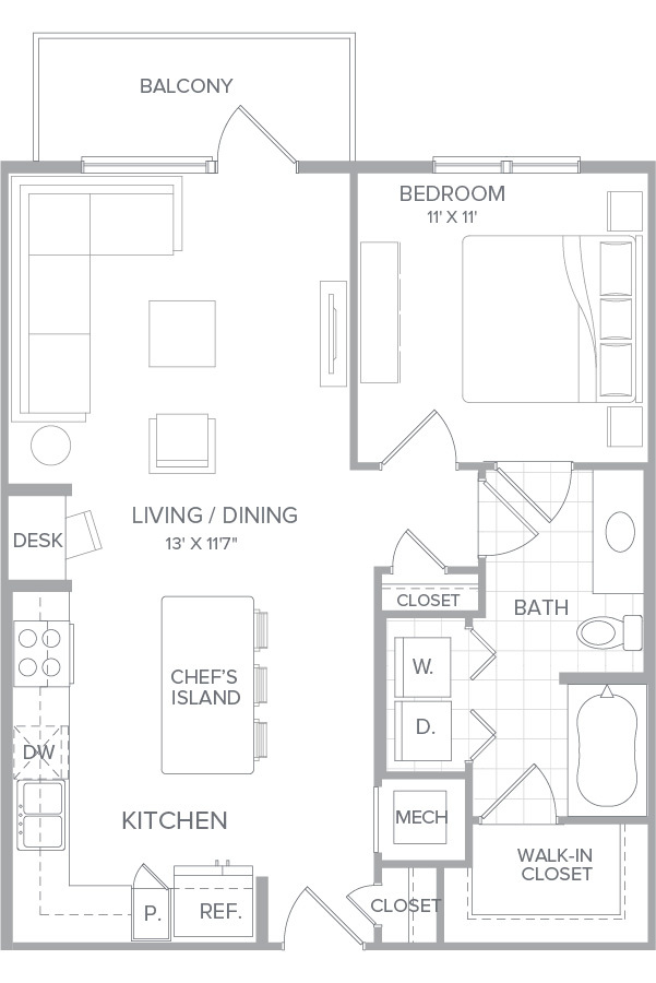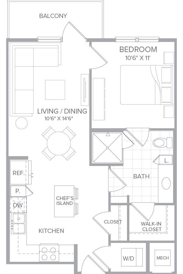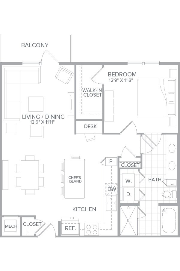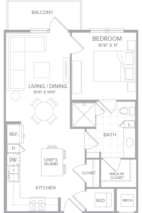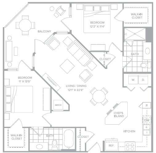 Apartment Unit: 121Apartment Model: A1d$1,2501 Bedroom, 1 Bath, 663 sq ftAvailable NowFloorplan A1f