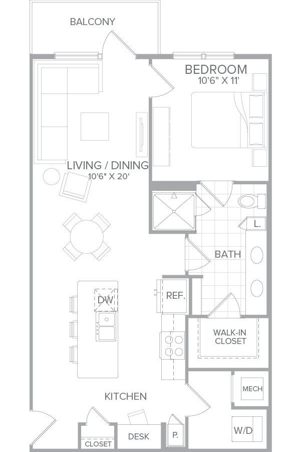 1 Bed, 1 Bath, 650 sq ftAvailable NowModel Gallery