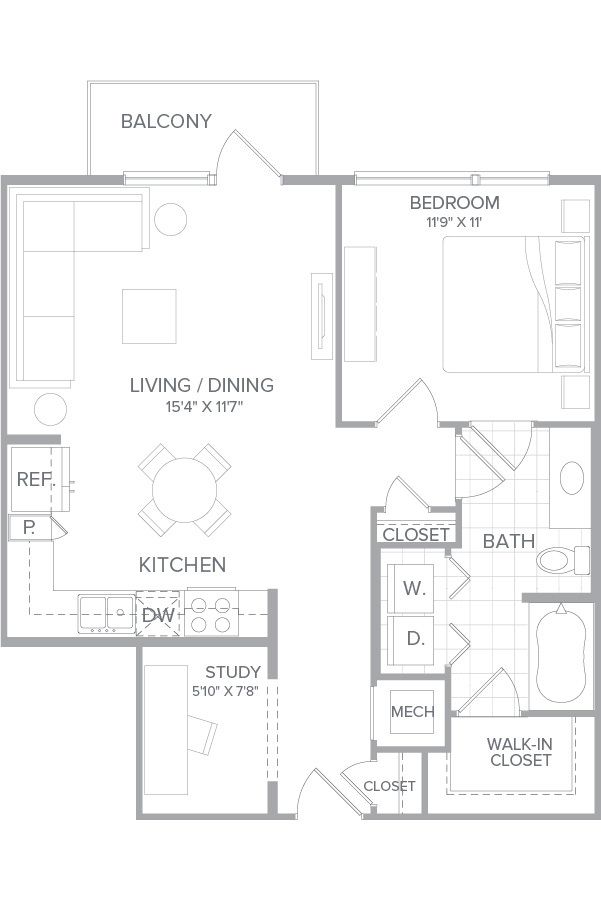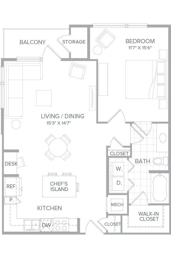 1 Bed, 1 Bath, 643 sq ftAvailable NowModel Gallery