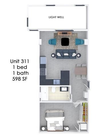 1 Bed, 1 Bath, 598 sq ftModel Gallery