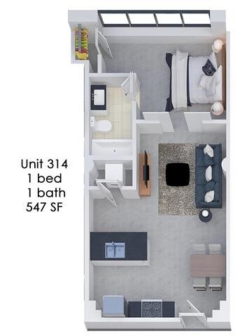 1 Bed, 1 Bath, 547 sq ftModel Gallery