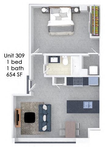 1 Bed, 1 Bath, 654 sq ftModel Gallery