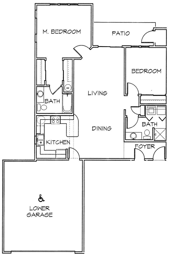 1 Bedroom with attached garage - Floorplan 2 2 Bedrooms
