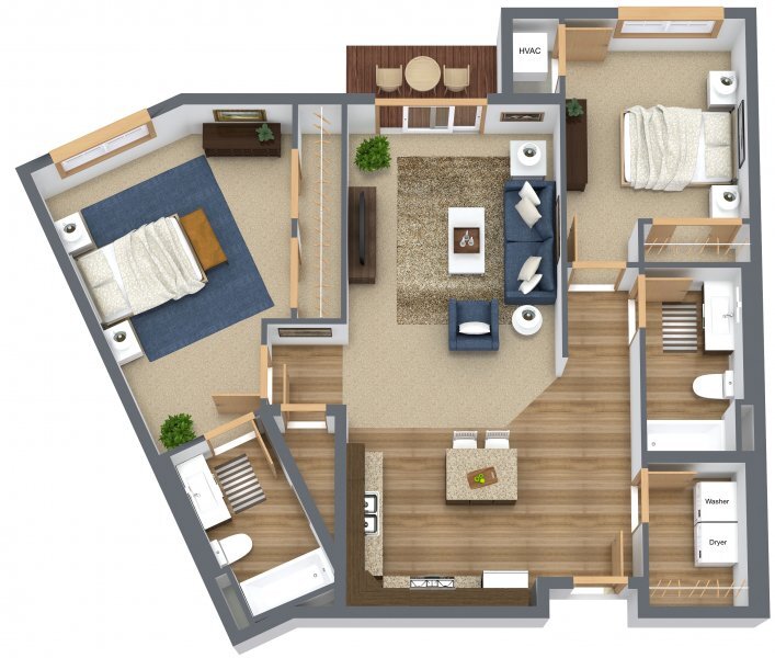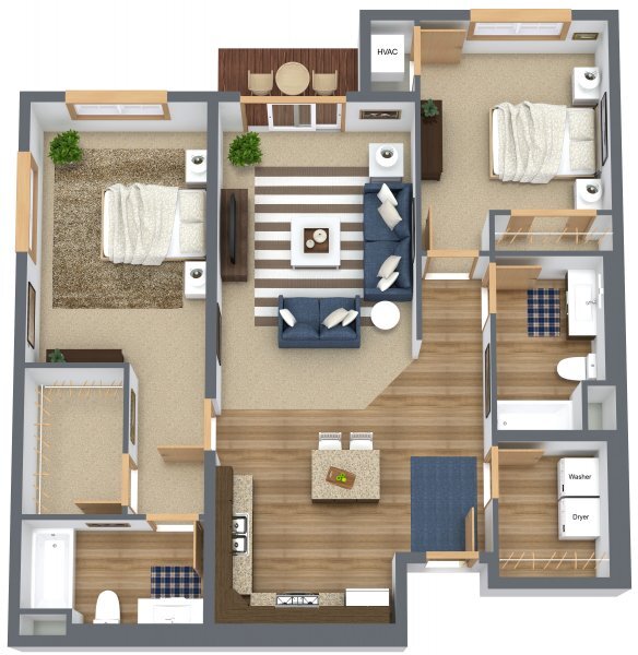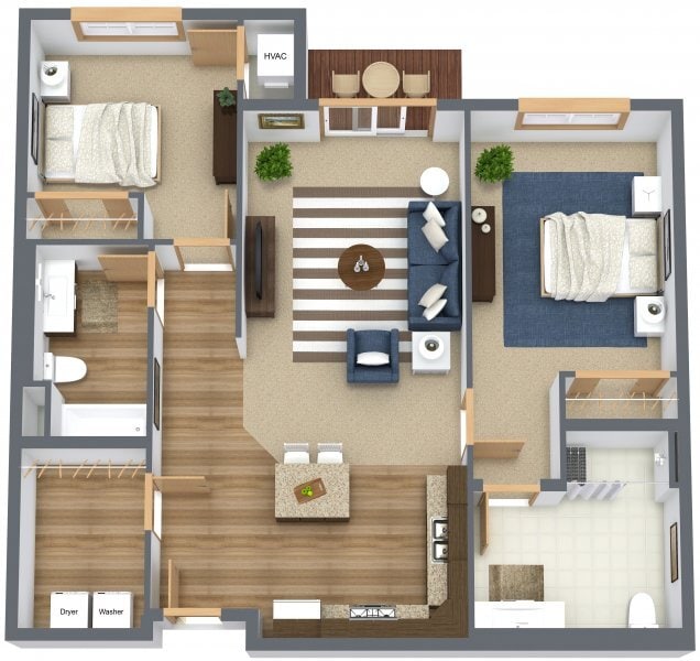 Apartment Model: 2 Bedroom/2 Bath Apartment D$1,9652 Bedroom, 2 Bath, 1046 sq ftAvailable Now![]()