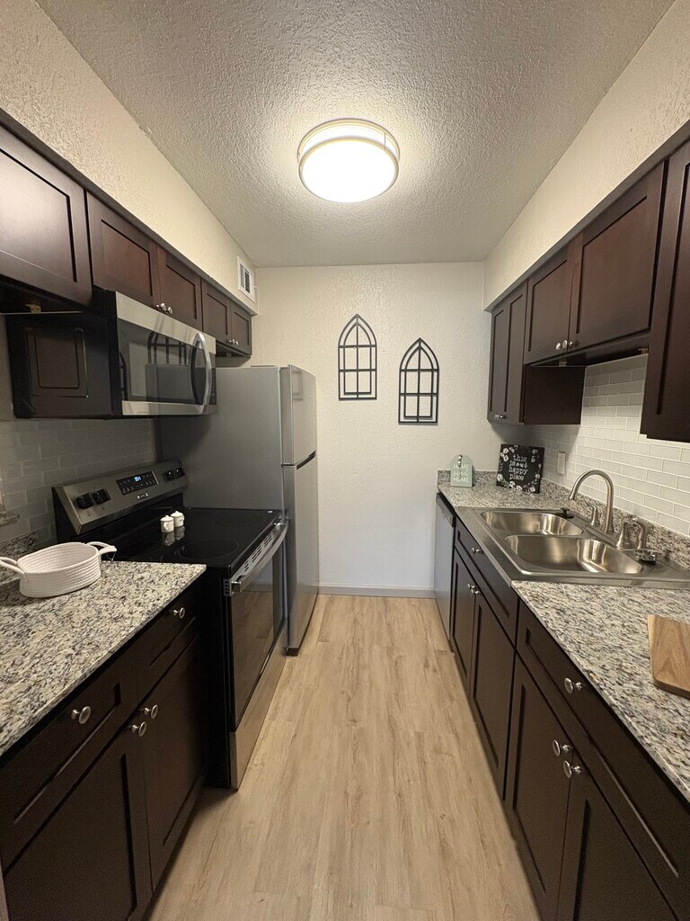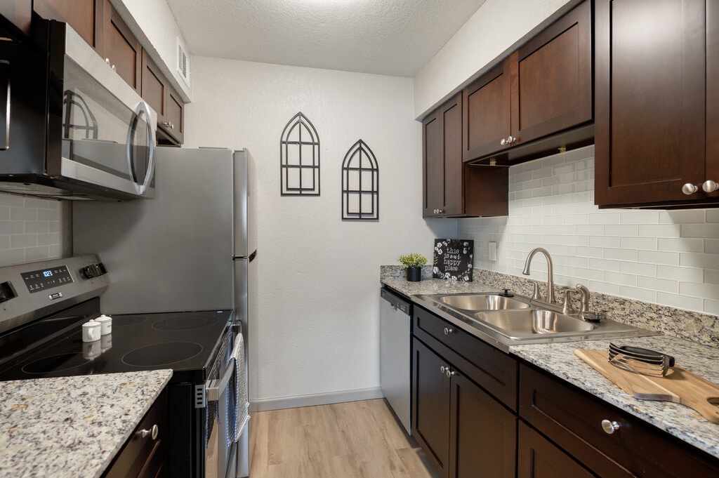 Huntsville's Hidden Treasure is located on I-45 North. 1 mile north of 11th street. We are conveniently located near shopping centers and Huntsville's historic downtown. SHSU IS JUST 10 MINUTES AWAY. We offer the following: • Wood Laminate Flooring (most units) • Granite Countertops (most units) • On Site Laundry Facilities (3) • (2) Swimming Pools • 24 Hour Maintenance • Oversized Walk-in Closets • Enclosed back Patios (select units) • Pets welcome! Apartments are unfurnished. We do require renters insurance and have a liability policy available for $11 monthly or you can bring your own policy. Application fees are $40 per adult or married couple. If you’re looking for a quiet place to call home, please phone our office and set up an appointment with a leasing professional for a tour today.