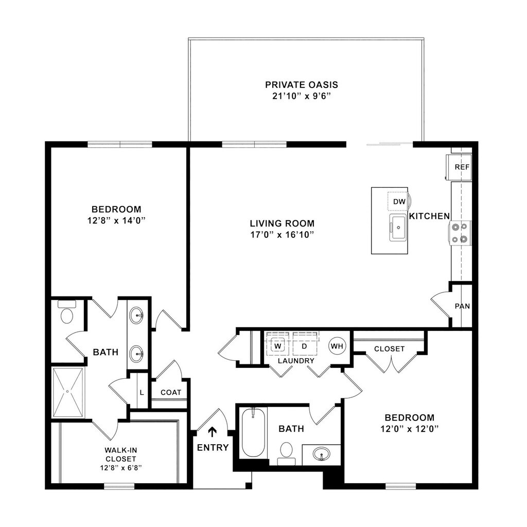 2 Beds, 2 Baths, 1280 sq ftModel Gallery