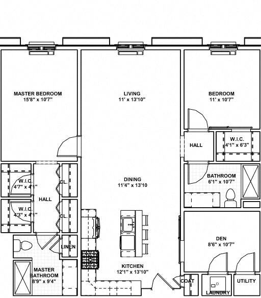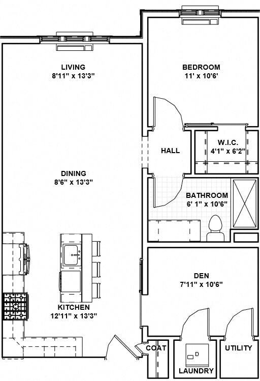 3 - 1 Bed, 1 Bath, 1 Den - Floorplan 1 8 - 1 Bed, 1 Bath, 1 Den