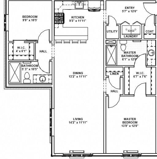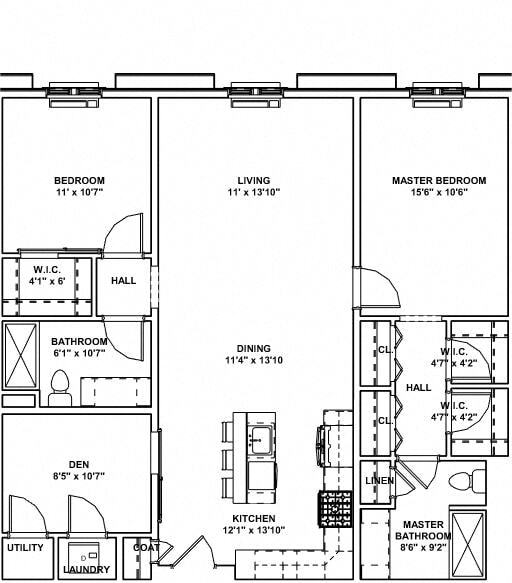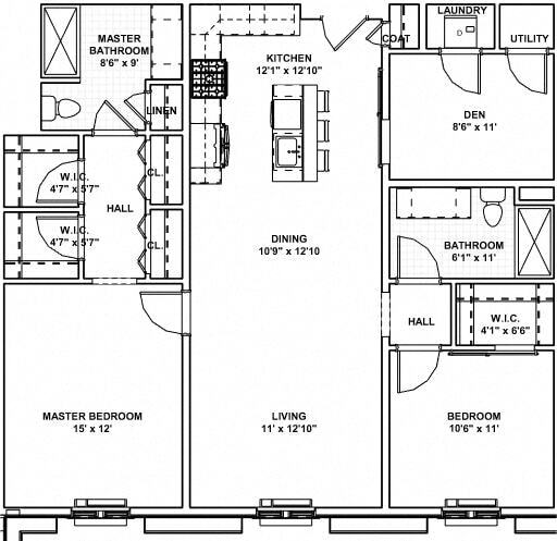 Apartment Model: 47 - 1 Bed, 1 Bath, 1 DenFrom $2,4511 Bedroom, 1 Bath, 845 sq ftUnavailable![]()