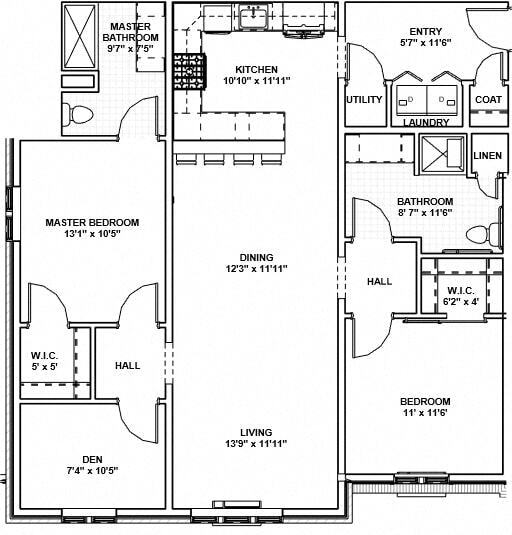 23 - 1 Bed, 1 Bath, 1 Den - Floorplan 1 3 - 1 Bed, 1 Bath, 1 Den
