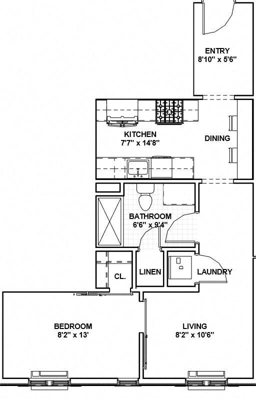 30 - 1 Bed, 1 Bath - Floorplan 1 49 - 1 Bed, 1 Bath