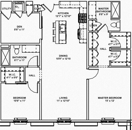 18 - 1 Bed, 1 Bath, 1 Den - Floorplan 1 23 - 1 Bed, 1 Bath, 1 Den