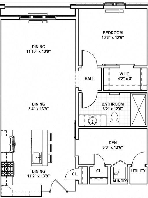 8 - 1 Bed, 1 Bath, 1 Den - Floorplan 1 24 - 1 Bed, 1 Bath, 1 Den