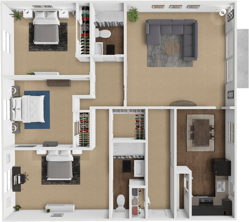 - Upgraded Three-Bedroom Espresso Cabinetry