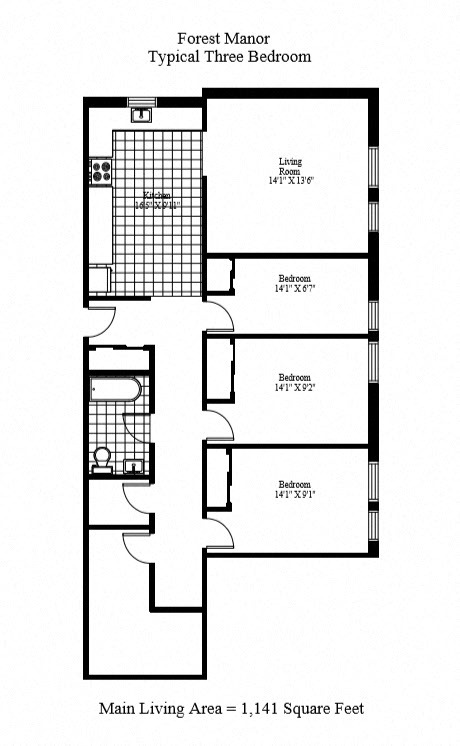 Apartment Model: 3 Bedroom3 Bedroom, 1 Bath, sq ftUnavailable3 Bedroom - Floorplan 1