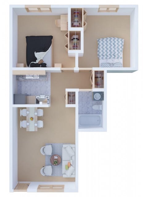 2 Beds, 1 Bath, 685 sq ftModel Gallery